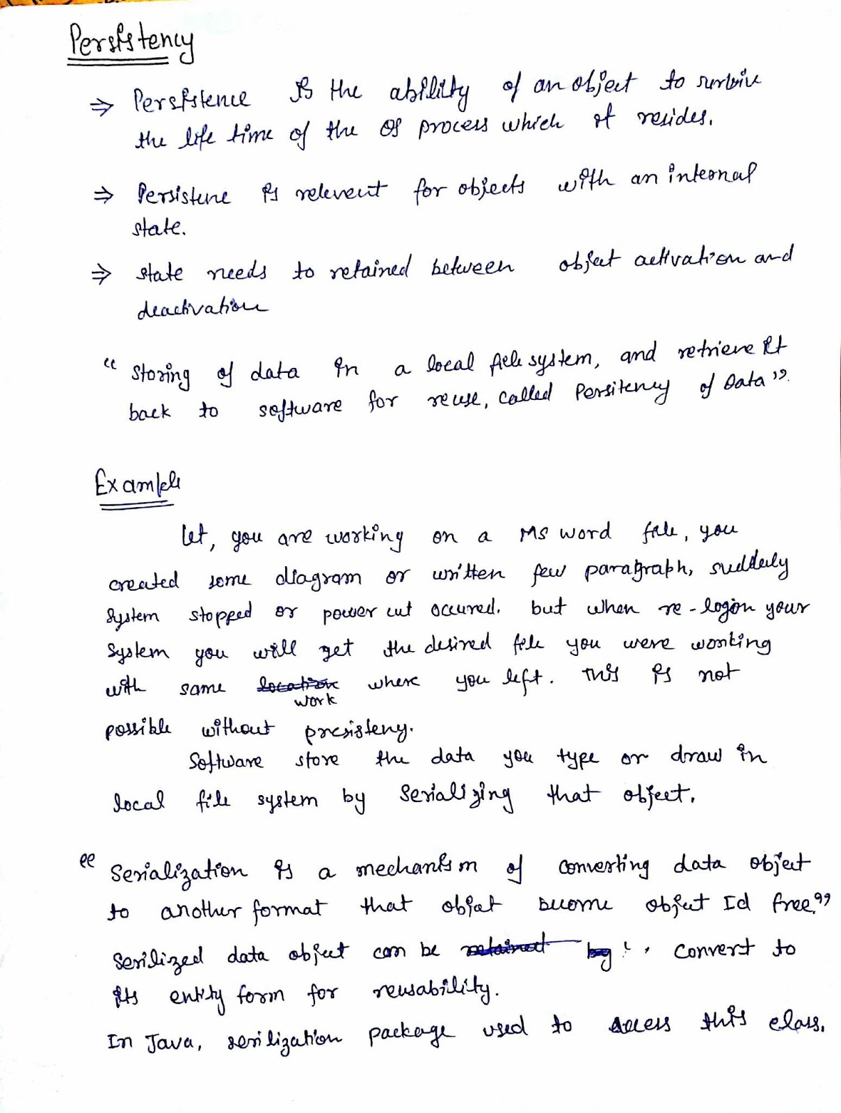 What is persistency? Give an example. Mcs032